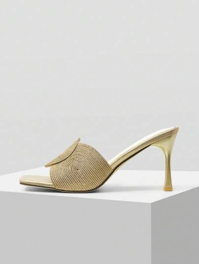MOTF PREMIUM PU皮革方头高跟凉鞋 - 金色 - 查看 1