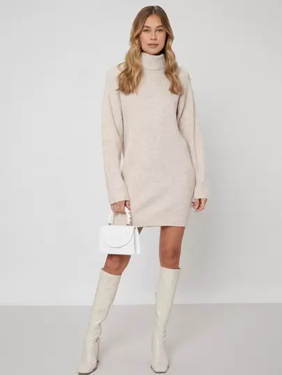 MOTF PREMIUM 再生滌高領毛衣裙 - 杏色 - 查看 1