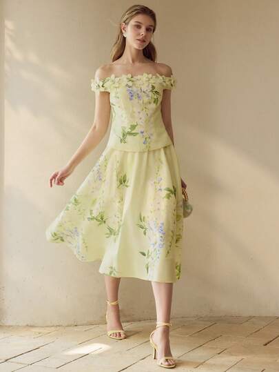 MOTF PREMIUM 女士优雅喇叭花裙 - 綠色 - 查看 1