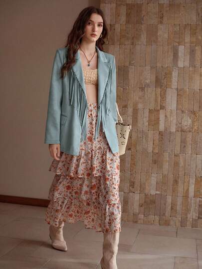 MOTF PREMIUM 女士优雅流苏翻领西装外套 - 水鴨藍 - 查看 1