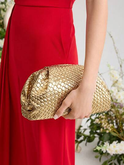 MOTF PREMIUM 女士金色纹理手拿包,时尚新娘包,适合派对、婚礼、舞会、晚宴/宴会,可搭配婚纱、礼服、舞会礼服、生日礼服、派对礼服、情人节、女士优雅包 - 金色 - 查看 5