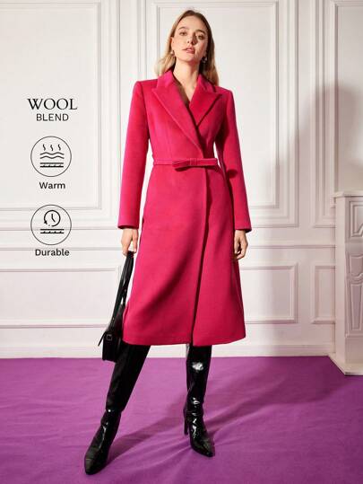 MOTF PREMIUM 羊毛混紡蝴蝶結束腰大衣 - 玫紅色 - 查看 1