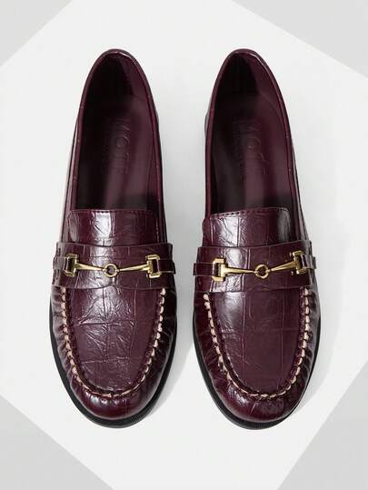 MOTF 女士舒适复古英伦风格乐福鞋,时尚优雅 - 酒紅色 - 查看 1