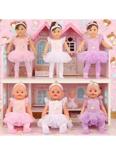 MSYO 1 套适合 18 英寸和 14 英寸美国女孩娃娃的时尚芭蕾舞裙套装,服装配饰包括裙子、鞋子、头带、娃娃装扮游戏配件,是送给小女孩的生日/节日/圣诞节的绝佳礼物,不含娃娃和鞋子 - 彩色 - 查看 1