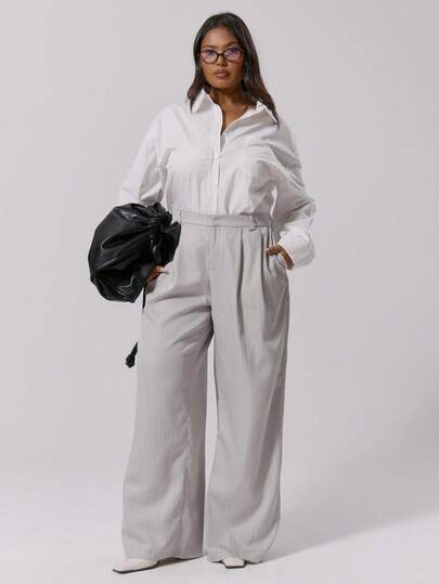 MUSERA 宽松慵懒低腰褶皱长裤,优雅可爱性感街头风,适合夜间外出穿着,曲线优美 - 灰色 - 查看 1