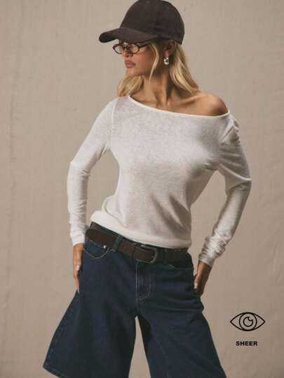 MUSERA 宽松不对称长款长袖针织上衣,夏季可爱度假风,90年代Y2K复古风,适合工作、日常休闲、节日、返校、户外等场合,春季皆宜。 - 白色 - 查看 4