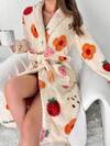 女士睡袍,草莓印花时尚浴袍,宽松长袖柔软绒毛保暖浴袍,适合冬季、派对、日常穿着,家居浴室装饰,温暖冬季装饰