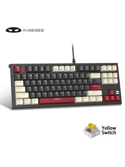 MageGee MK-Sky87 機械遊戲鍵盤開關緊湊型 87 鍵 LED 背光有線白色遊戲鍵盤適用於筆記本電腦/Windows/PC/Mac/Comp 白色黑黃色開關 - 黑色 - 查看 1