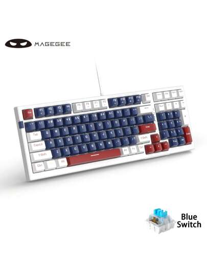 MageGee MK-Sky98 機械遊戲鍵盤熱插拔小型緊湊型 98 鍵 100% 防重影 LED 背光有線遊戲鍵盤適用於筆記型電腦、電腦、桌上型電腦白色藍藍色開關 - 藍色 - 查看 1