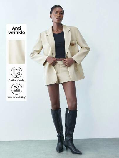 Maija 2025春夏系列,以七月四日、圣约翰、毕业典礼、奶油黄假日为主题,女士休闲宽松秋季西装外套,适合各种场合。 - 卡其色 - 查看 3