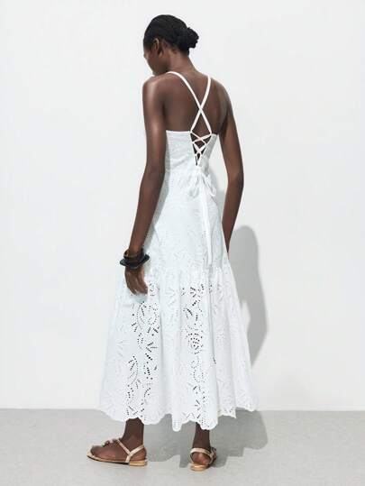 Maija 女士优雅刺绣印花细肩带连衣裙,度假风格 - 白色 - 查看 5