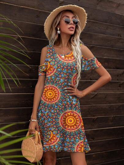DEARCASE 曼陀羅印花挖肩連衣裙 - 彩色 - 查看 1