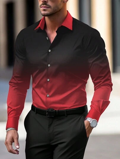Manfinity AFTRDRK 男士渐变色长袖衬衫,秋季 - 紅色 - 查看 1