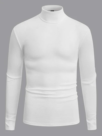 Manfinity NiteLyfe 男士小高領素色T恤 - 白色 - 查看 1