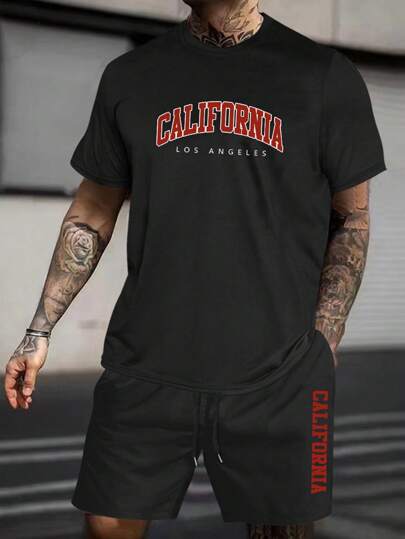 Manfinity Campus Court 休閒抽繩字母男士兩件套 - 黑色 - 查看 1