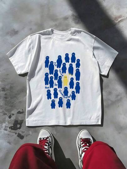 Manfinity Dauomo 男士短袖T恤,抑郁主题T恤,Emo风格图案T恤 - 白色 - 查看 1