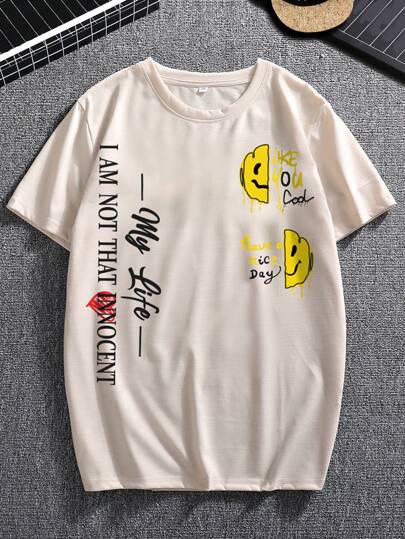 Manfinity EMRG 男款卡通笑臉印花t卹 - 卡其色 - 查看 1