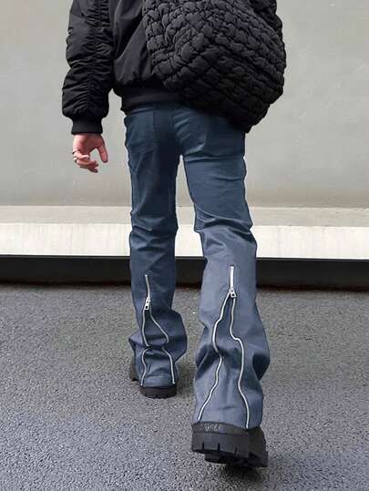 Manfinity Roghcode 男士休闲拉链后背设计口袋潮流长裤 - 霧霾藍 - 查看 3
