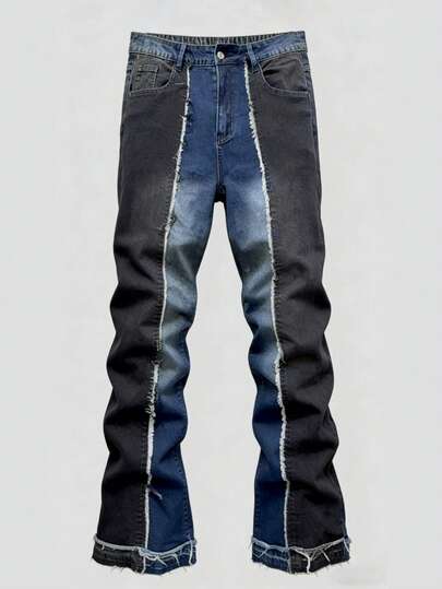 Manfinity EMRG 男士时尚街头风弹力阴阳拼接喇叭牛仔裤 - 藍色 - 查看 1