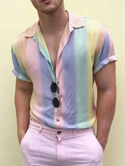 Manfinity Hypemode 男士漸變短袖襯衫 - 彩色 - 查看 1