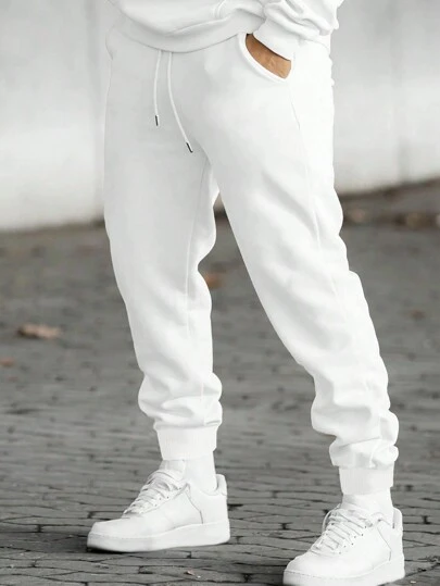 Manfinity Homme 宽松男式松紧腰抽绳慢跑裤 - 白色 - 查看 1