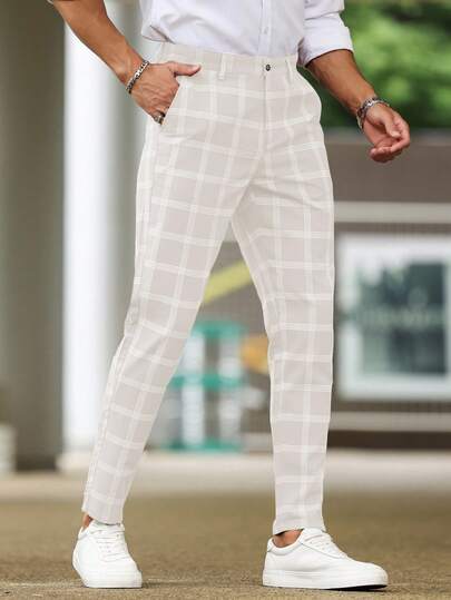Manfinity Homme 男士休閒格紋修身西褲 - 杏色 - 查看 1