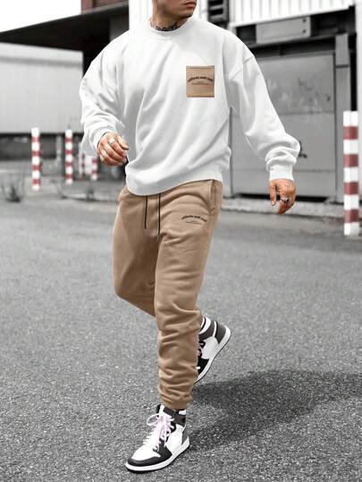 Manfinity Homme 男士字母圖案運動衫&腰部抽繩衛褲