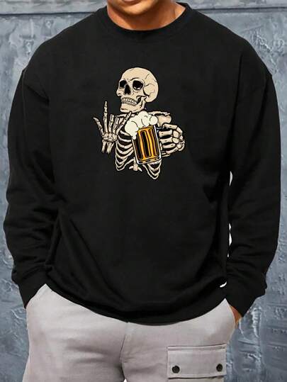 GENTILAND 男士大码骷髅頭圖案運動衫 - 黑色 - 查看 1