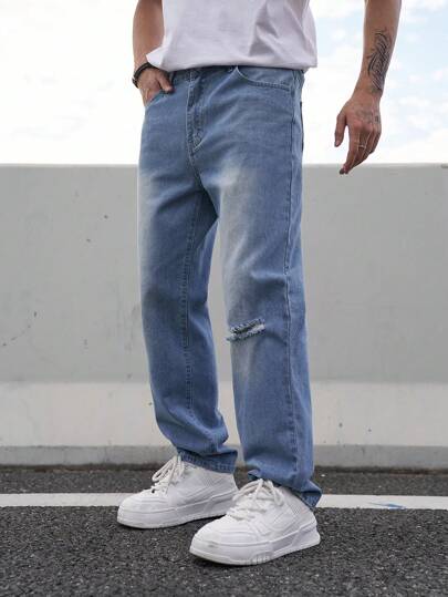 Manfinity Homme 男士帶口袋牛仔褲 - 藍色 - 查看 1