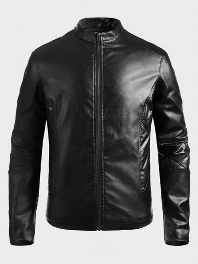 GENTILAND 男士纯色拉链夹棉大衣 - 黑色 - 查看 1