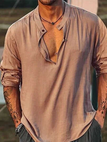 Manfinity Homme 男士前扣半門襟襯衫 - 棕色 - 查看 4