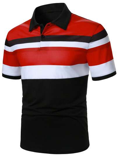 Manfinity Homme 男士撞色条纹短袖Polo衫 - 彩色 - 查看 1