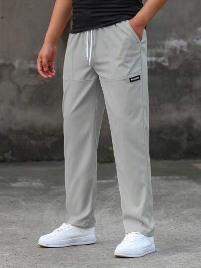 Manfinity Homme 男士字母拼接宽松抽绳腰直筒裤,秋季 - 淺灰色 - 查看 1