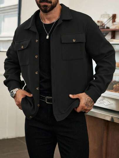 Manfinity Homme 男士长袖短款休闲针织外套,秋冬款 - 黑色 - 查看 1