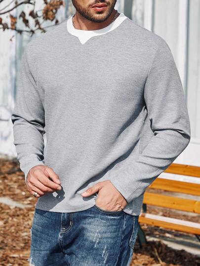 Manfinity Homme 男士大尺碼拼色 T 卹 - 灰色 - 查看 1