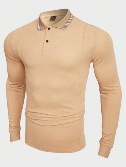 GENTILAND 男士純色針織休閒 Polo 衫 - 卡其色 - 查看 1