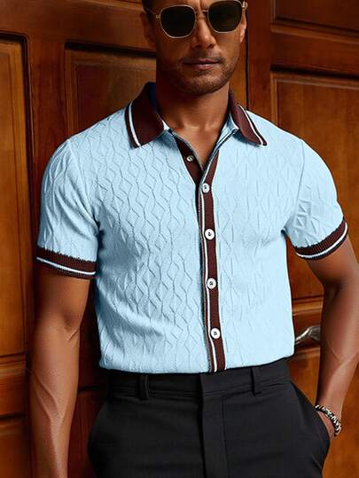 Manfinity Homme 男士条纹短袖单排扣休闲针织上衣