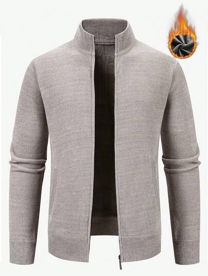 Manfinity Homme 男士保暖内衬休闲立领长袖开衫,秋冬季百搭单品 - 灰色 - 查看 1