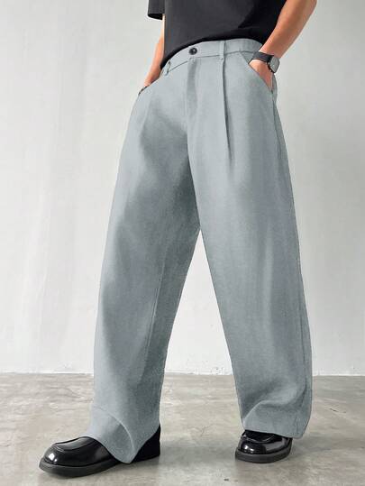 Claim Dot 男士休闲口袋阔腿加厚裤,秋季款 - 淺灰色 - 查看 1
