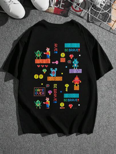 Manfinity VCAY 男士大码卡通圖案T恤 - 黑色 - 查看 1