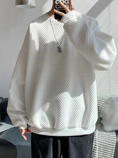 Manfinity Hypemode 鬆身男士純色下 Dropped 肩寬鬆織衫 - 白色 - 查看 1