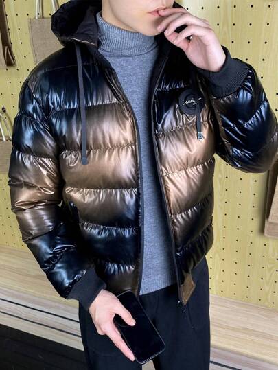 Manfinity Hypemode 男士拉链抽绳连帽超大加厚外套,外出黑色休闲绗缝冬季外套,适合朋友、丈夫、男朋友的礼物 - 黑色 - 查看 4