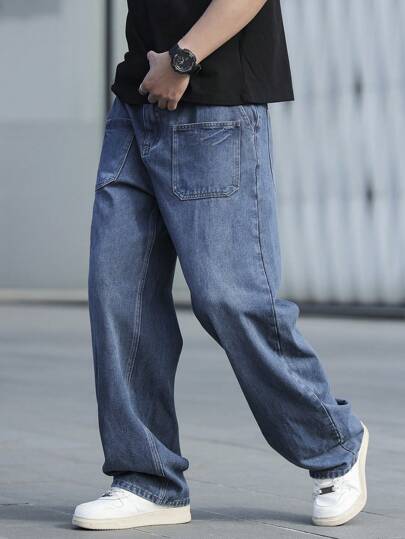 Claim Dot 男士休闲直筒洗水牛仔裤 - 藍色 - 查看 1