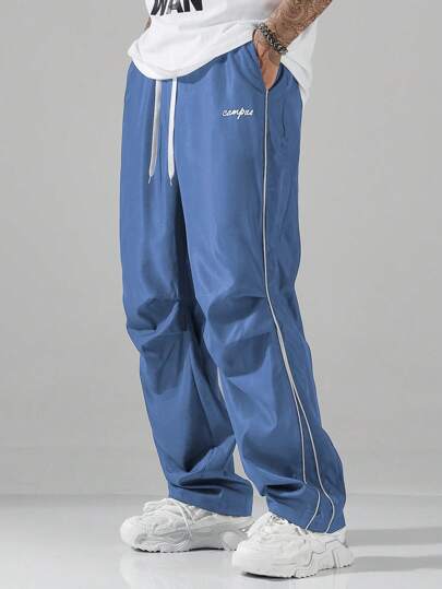 Manfinity Hypemode 男士秋季街头学院风长裤 - 藍色 - 查看 1