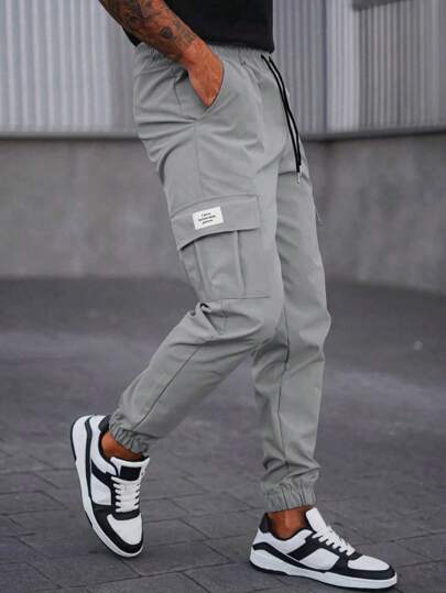 Manfinity LEGND 男士简约风格慢跑裤,适合夏季休闲、秋季 - 灰色 - 查看 3
