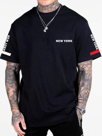 Manfinity 男士字母圖案T恤 - 黑色 - 查看 1