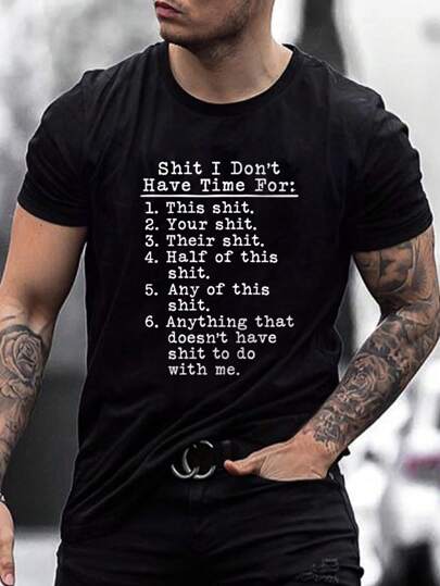 Manfinity Homme 男士字母标语图案短袖 T 恤,街头服饰,适合说唱歌手,适合外出 - 黑色 - 查看 1