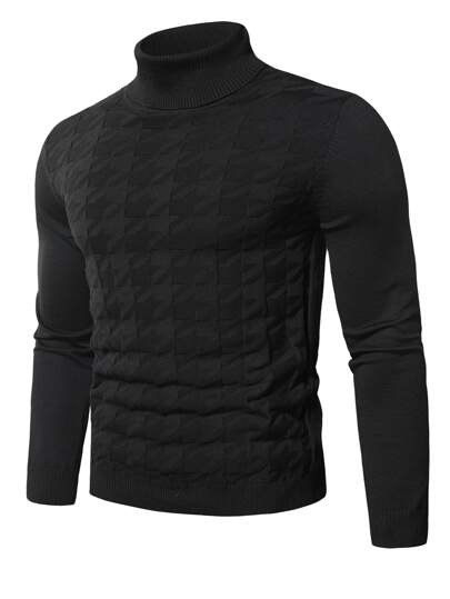 Manfinity Homme 男士高領素色套頭毛衣 - 黑色 - 查看 1
