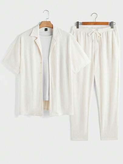 GENTILAND 2 件男士修身针织翻领短袖衬衫套装 - 白色 - 查看 1