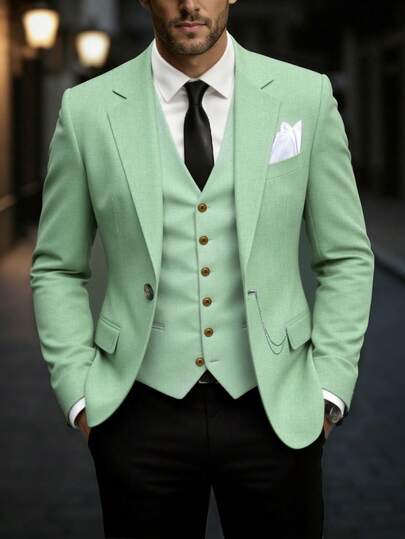 Manfinity Mode 男士时尚商务休闲西装外套 - 淺藍色 - 查看 1